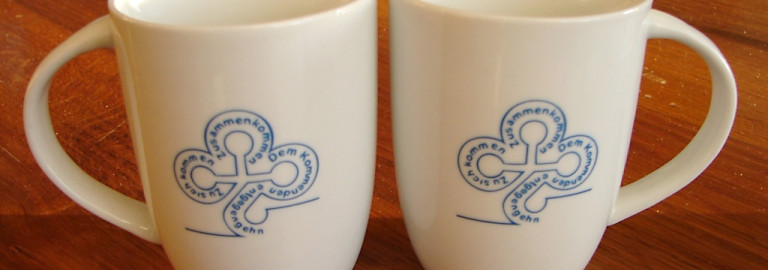 Im Rahmen des Fundraising zum Neubau des Gemeindezentrums gab es 2015 eine Gemeindetasse mit dem Logo.
