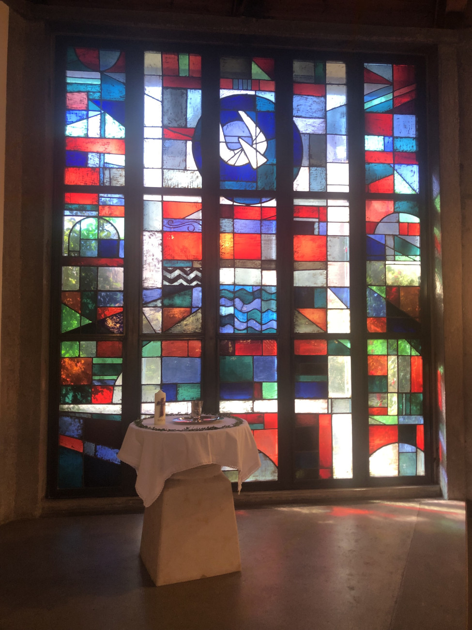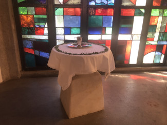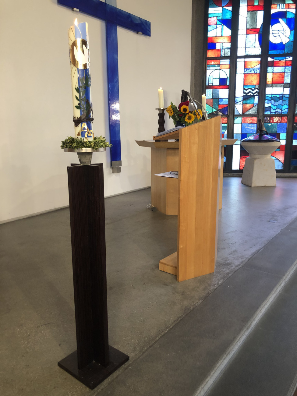 Taufstein und Glasfenster