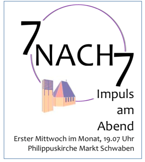 7 nach 7 – Impuls am Abend: jeden ersten Mittwoch im Monat in der Philippuskirche, 19.07 Uhr. Termine sind dem Gemeindebrief und dem Kalender der Homepage zu entnehmen.