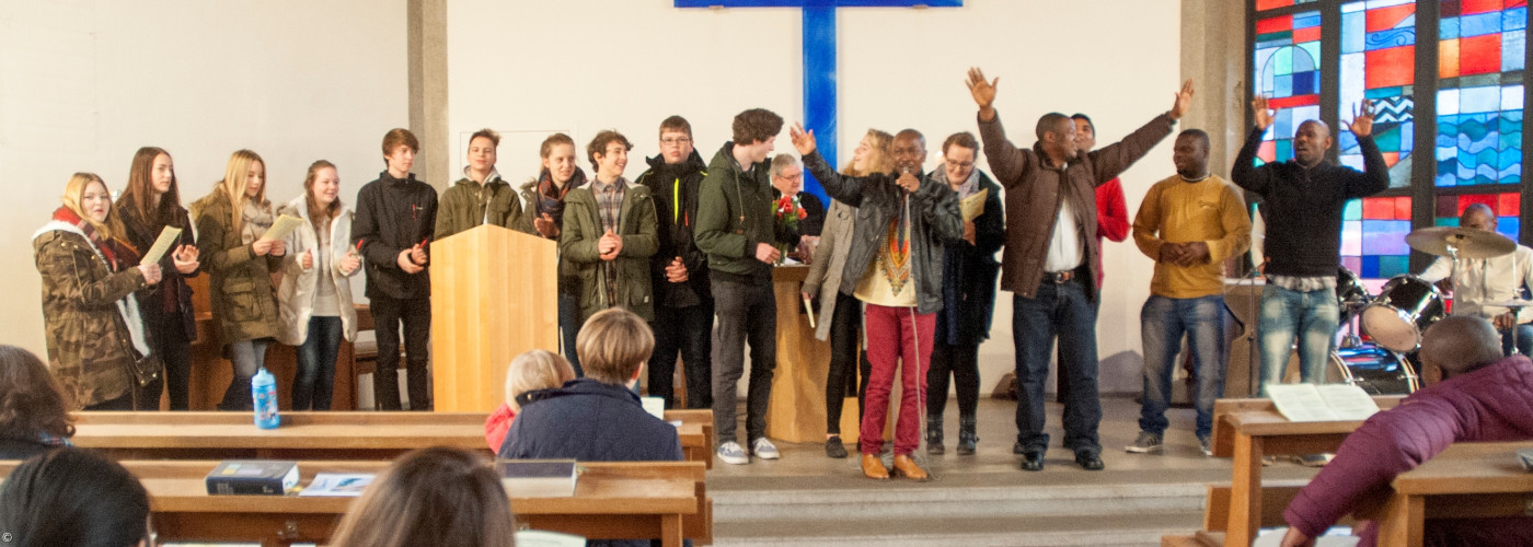 Unsere Gemeinde pflegt eine Willkommenskultur. Bei der großen „Flüchtlingswelle“ 2015 engagierten sich Gemeindeglieder für die Menschen aus Afrika und Asien. Einige der Männer schlossen sich dem Gospelchor an, besuchten die Proben und traten bei Konzerten auf. Sie wirkten auch in einem Vorstellungsgottesdienst der Konfirmanden im Frühjahr 2016 mit.